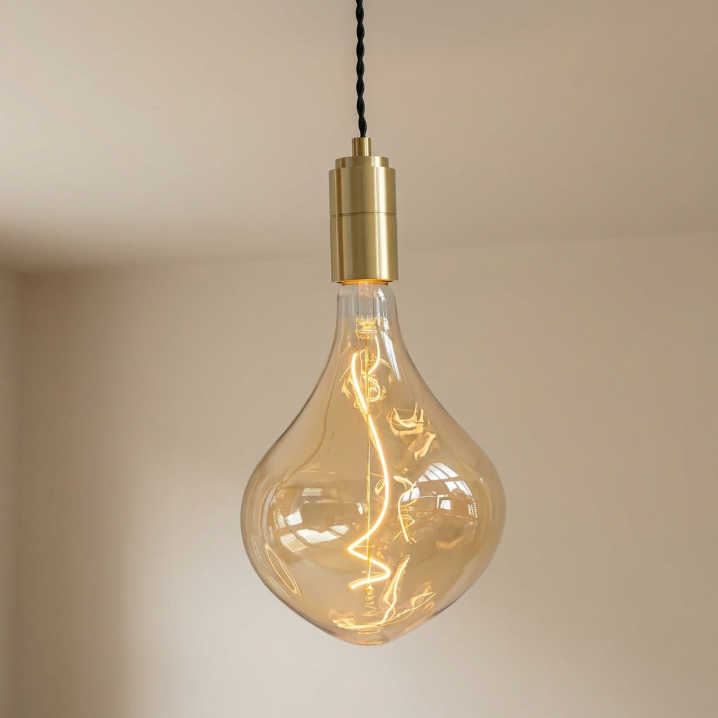 Whilst unboxing the package I was struck by the solid feel to the brass parts, the beautiful black fabric around the cord and the bulb itself was actually bigger than I realised. Delivery was quick, installation was straight forward and it looks even better in real life than online. One very happy customer!