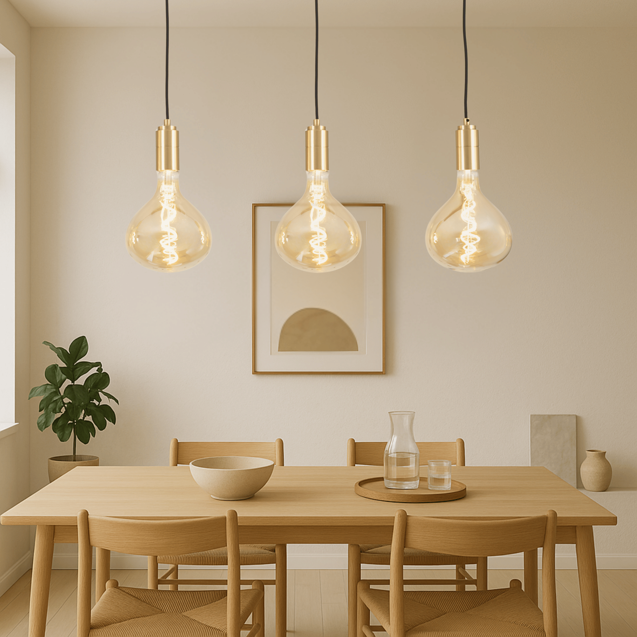 Create a warm, design-led focal point with our Black triple pendant bulb light paired with 3x timeless Olivia bulbs. Finished in matte black and suspended on a woven fabric cord, this 3 pendant bulb light combines refined elegance with sustainable materials, minimising plastic for a premium finish.