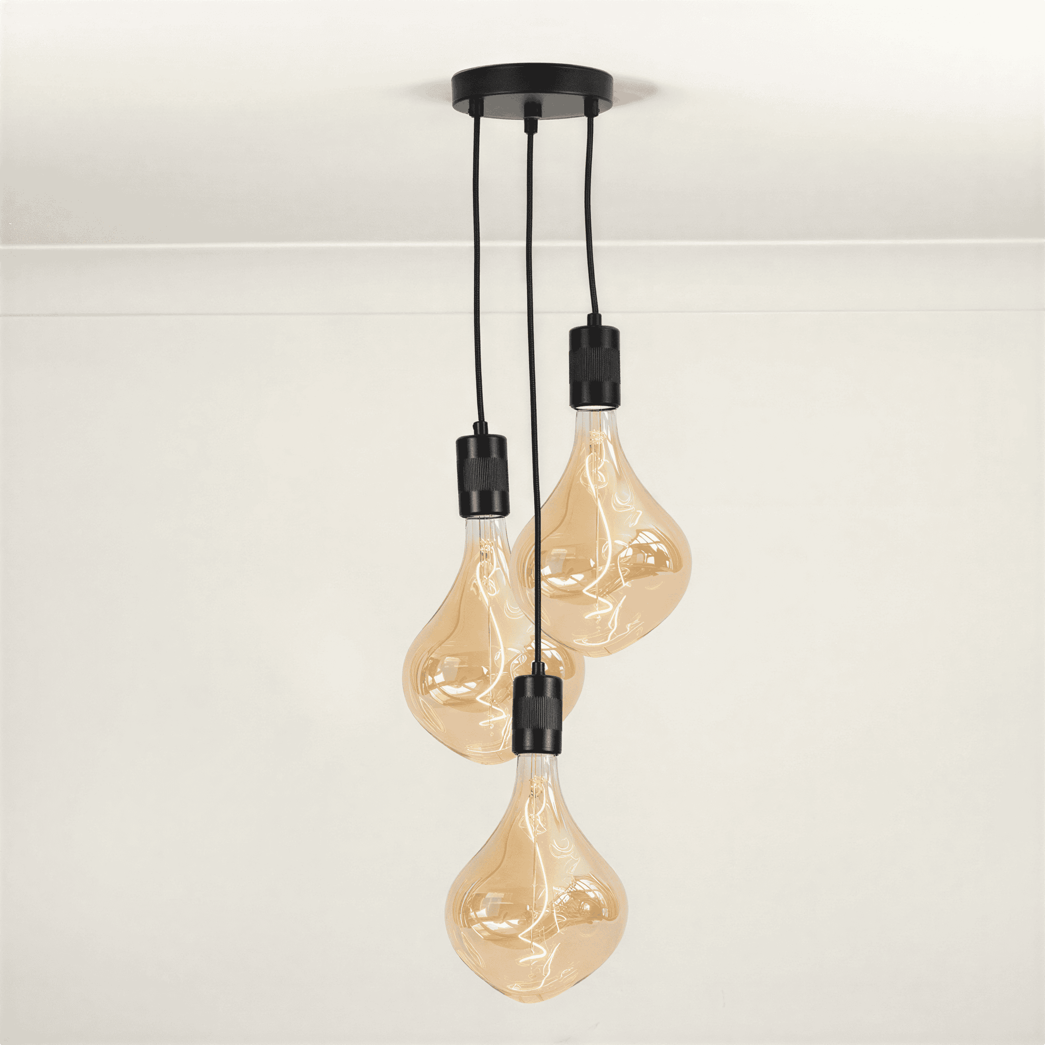 Elevate your space with the statement celeste cluster pendant light, featuring three hand blown sculptural celeste bulbs suspended from matte black pendants for a clean, minimalist look. Thoughtfully crafted from premium, sustainable materials with minimal plastic use, it offers both style and substance.