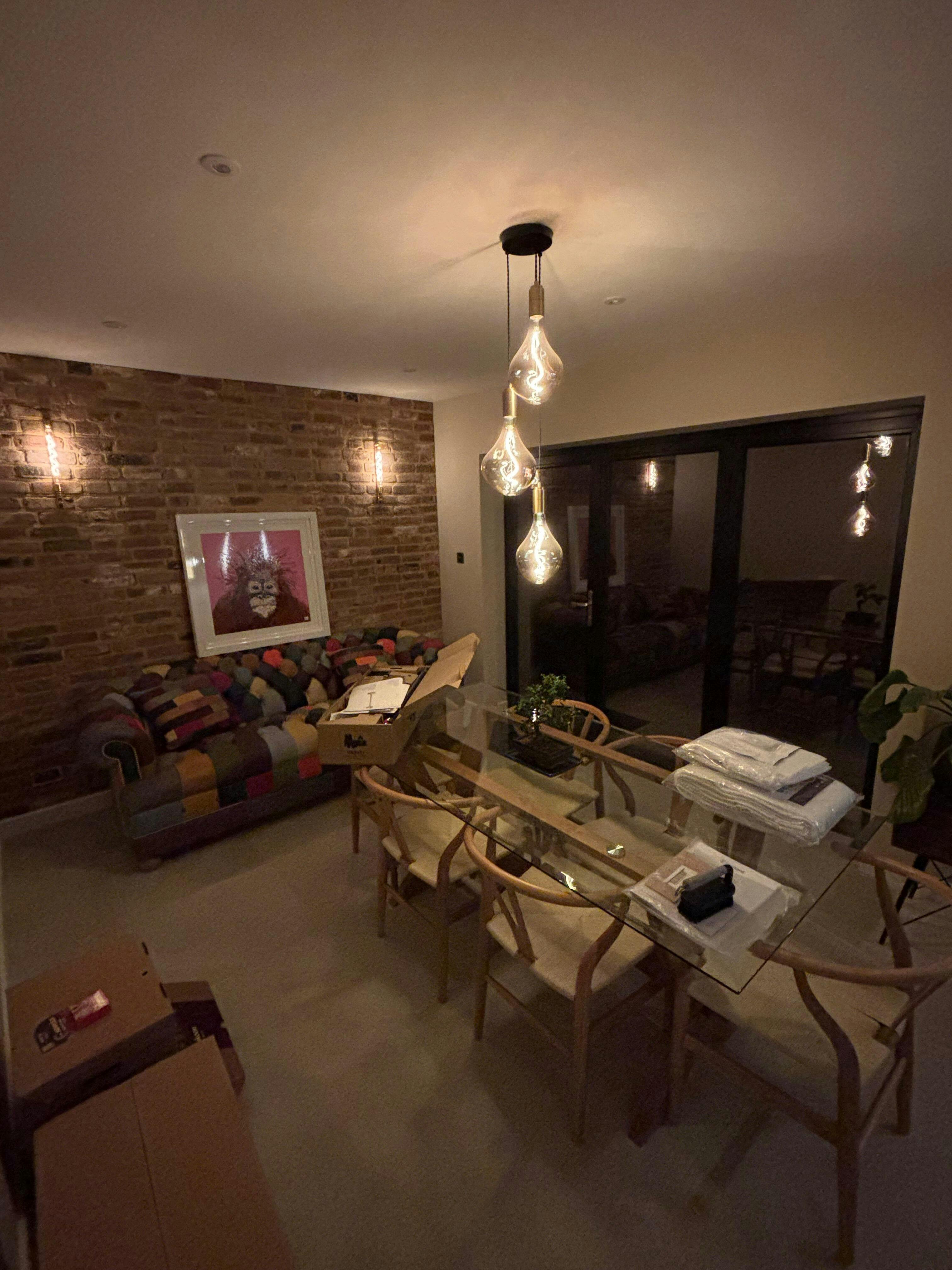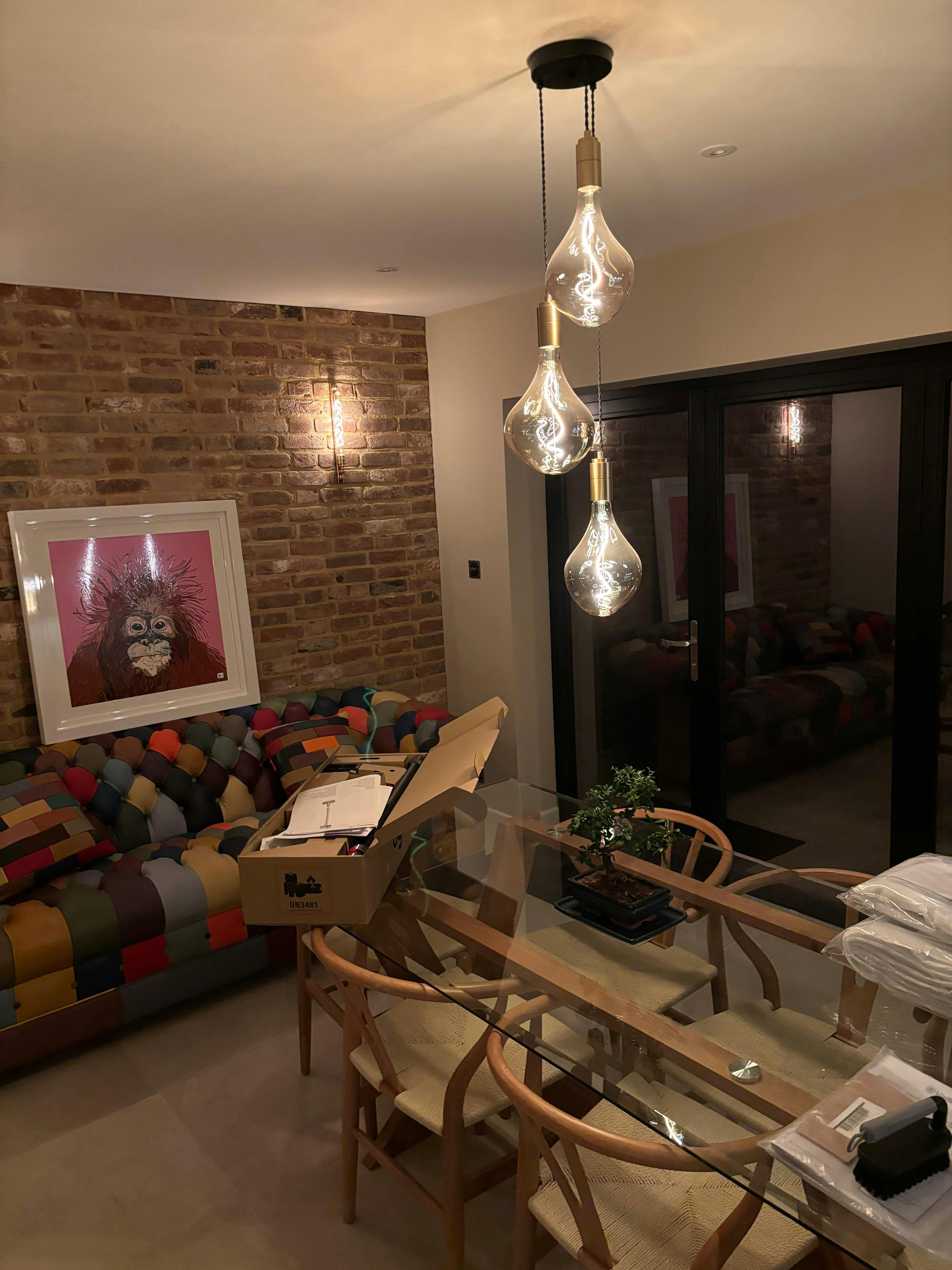 The pendant lights are huge, a lovely shade of amber and quite simply, stunning! 😊. Unfortunately, I can’t post a picture of them in their true glory as the kitchen has not been started - but the quality and craftsmanship are obvious.