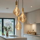 - Three suspended pendants create a layered, ambient glow ideal for dining areas and entranceways