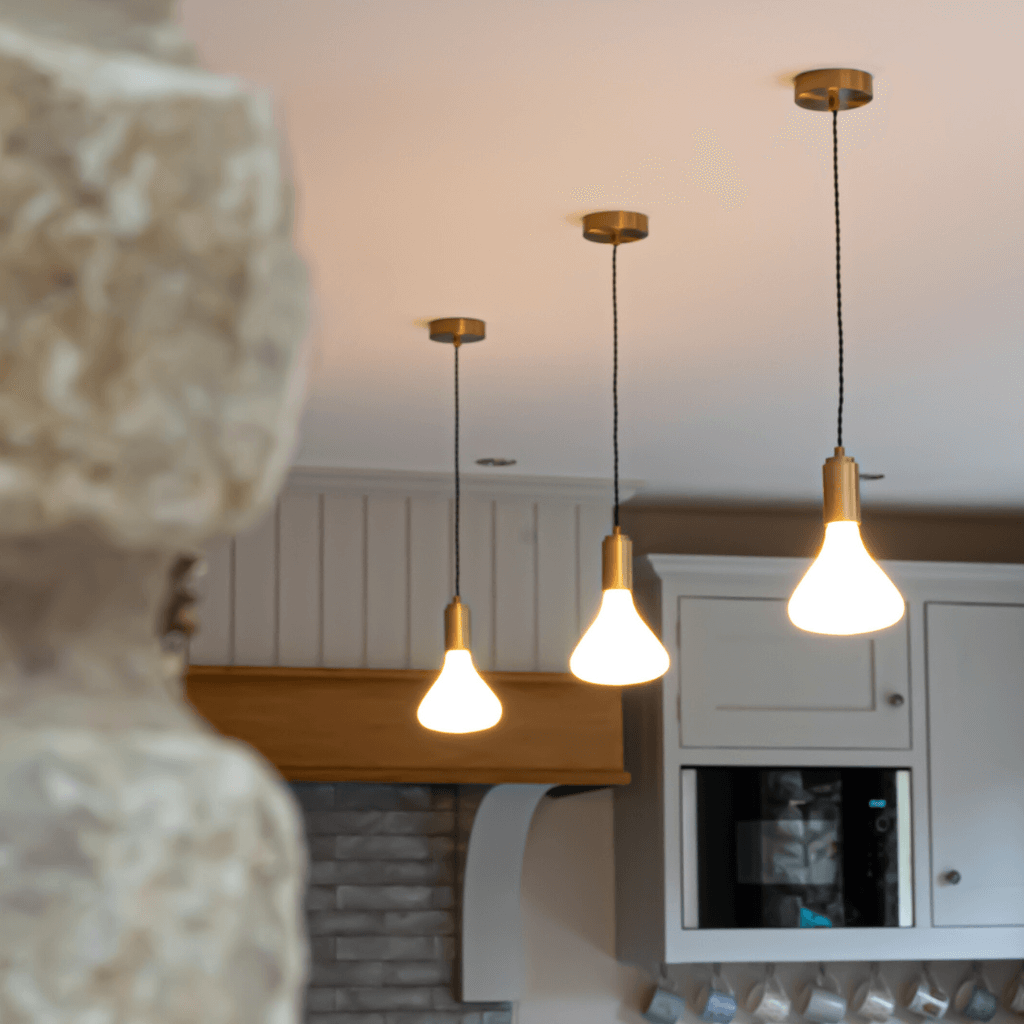A refined take on the classic bulb pendant light, pairing a sculptural, hand-blown porcelain dimmable LED bulb with a minimalist brass or aluminium holder, offering an elegant finishing touch to any space. Crafted from premium materials and designed with sustainability in mind, this decorative pendant light casts a warm, ambient glow that’s perfect beside the bed or suspended in a row above your kitchen island.
